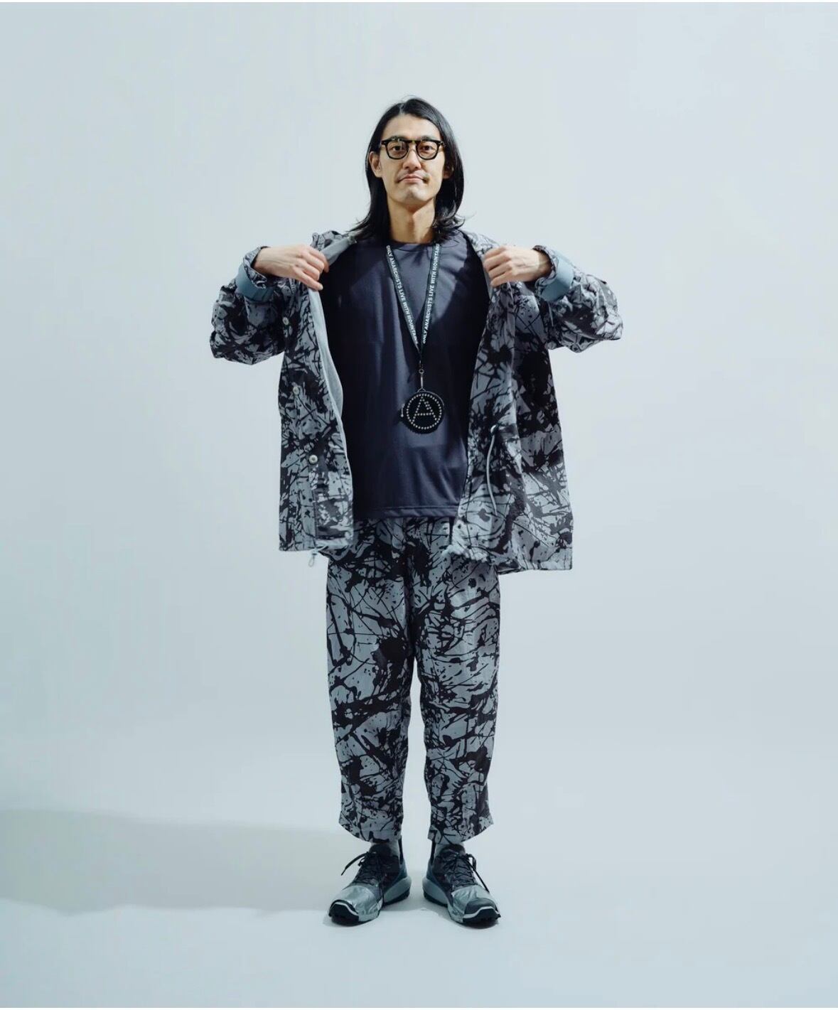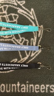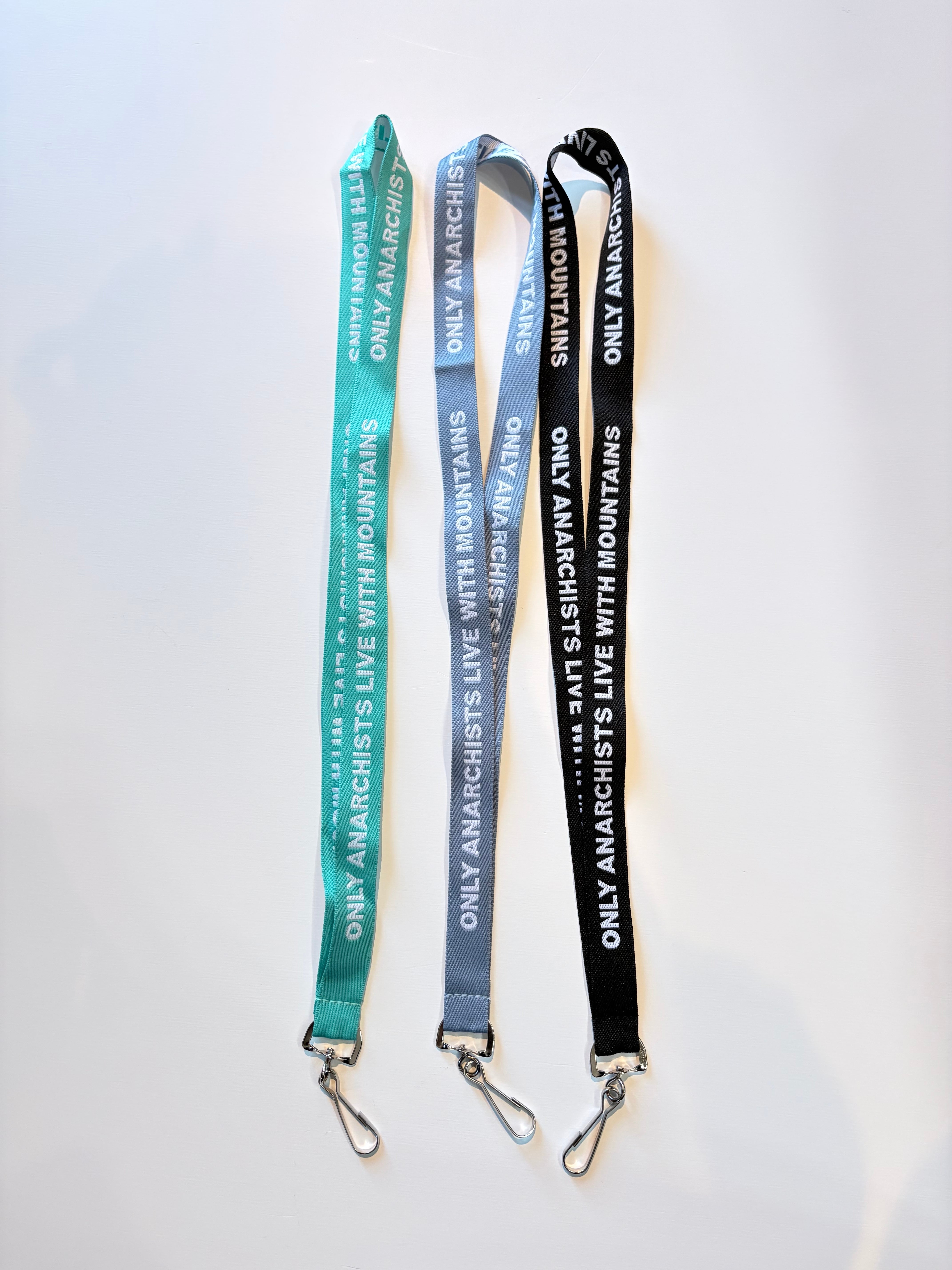 ONLY ANARCHISTS LIVE WITH MOUNTAINSのジャガード織テープを使用したネックストラップ